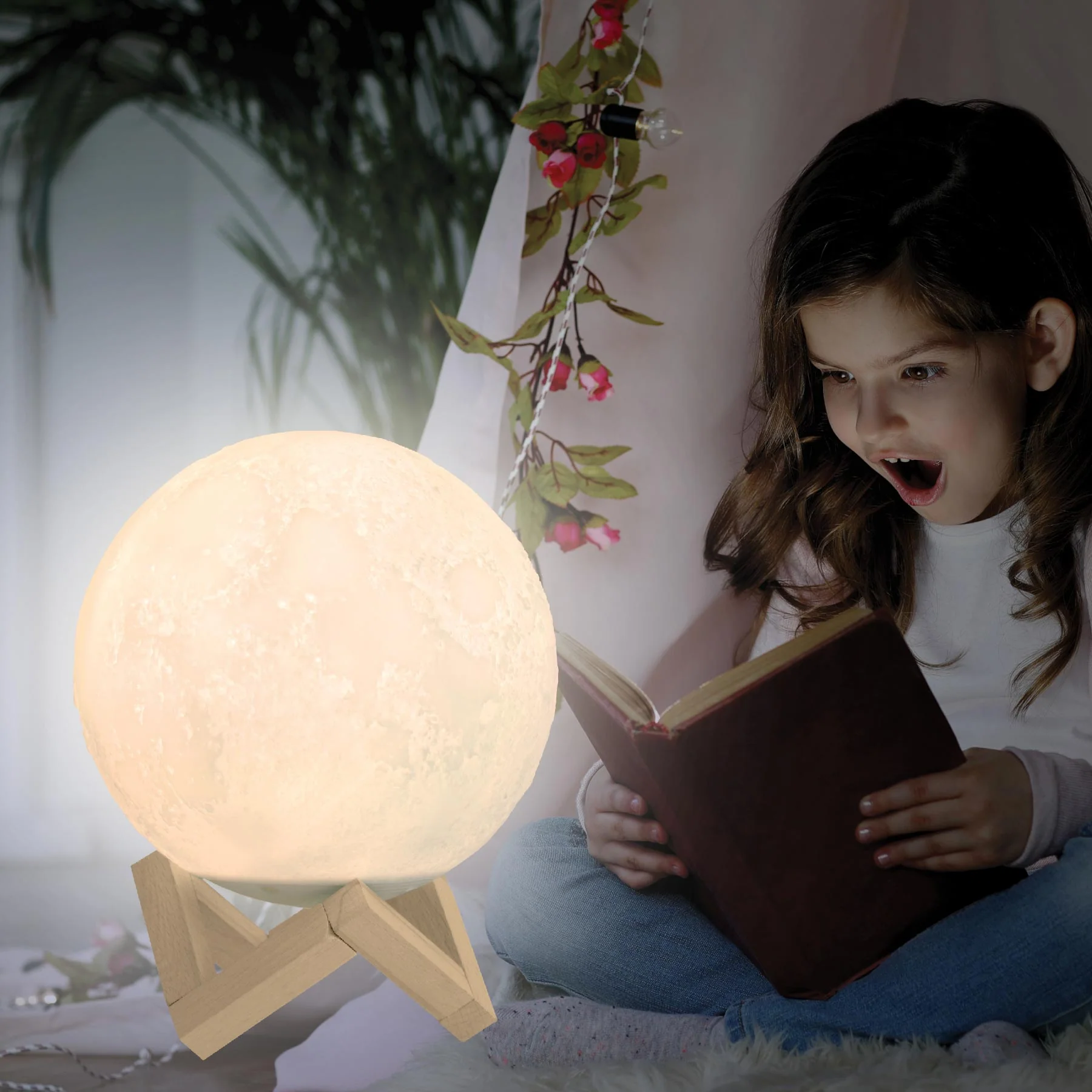 Perfect by your bedside, on your desk and more, this adorable moon lamp wirelessly connects to your music and provides gentle, soothing light wherever you place it. Listen to your favorite songs while relaxing, studying and more.